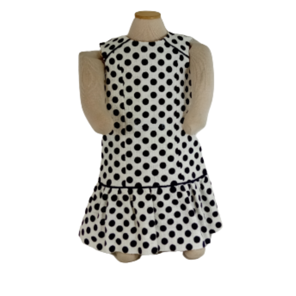 White & Black Little Girl Polka Dot Dress 90% Cotton, 10% Viscose