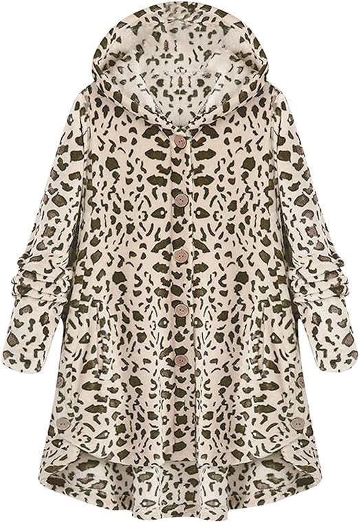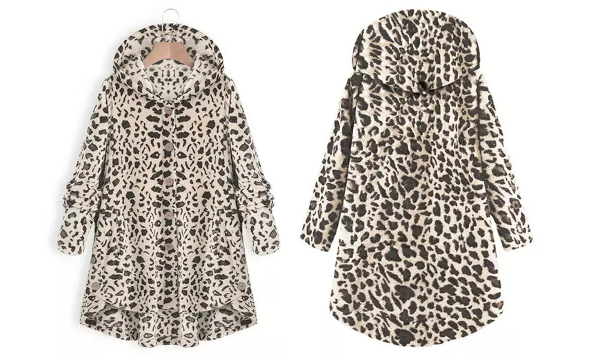 Invest in the Baisico Apricot Leopard Side-Pocket Plush Hooded Button-Up Coat and experience the magic of cozy luxury!