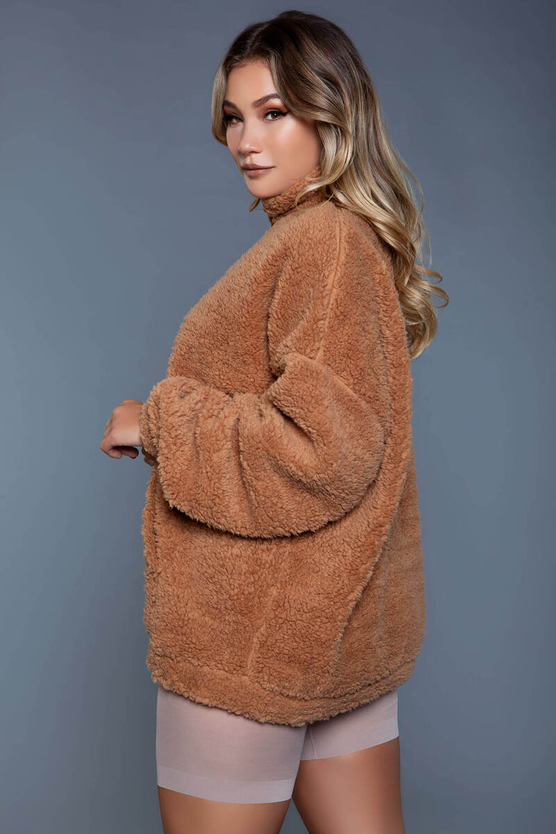 This ultra-cozy jacket features a soft and plush teddy bear fleece construction, an oversized silhouette that drapes effortlessly, and a versatile neutral hue that complements various outfits. Its relaxed fit ensures all-day comfort, while the front zipper fastening provides added warmth and security. Whether you're lounging at home, running errands, or enjoying casual outings, this jacket will quickly become your go-to choice for cozy comfort and effortlessly chic style.
