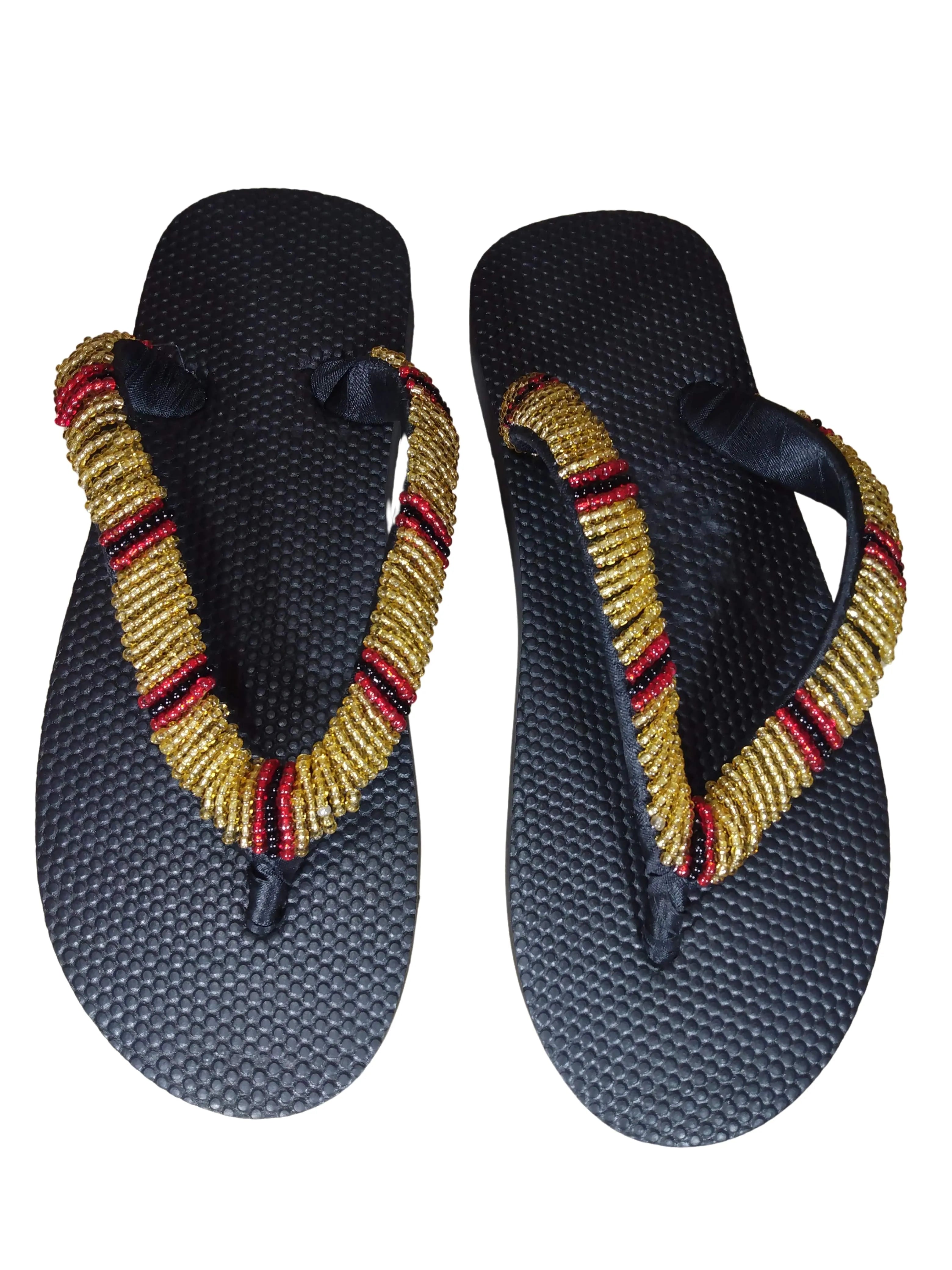 Beaded Unisex Flip Flop Gold Black Red Size 9.5 (measure 10")