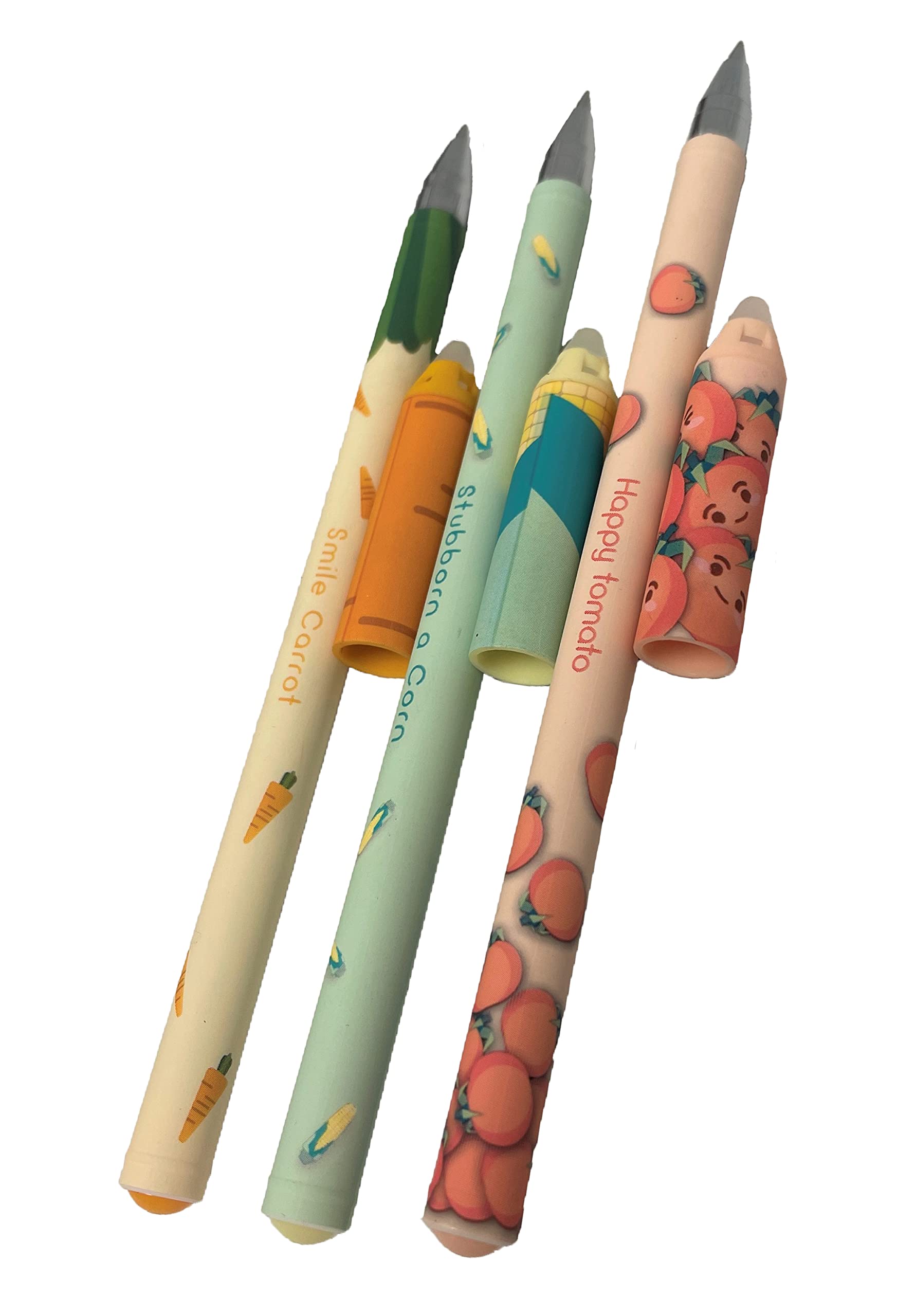 -Cute "Farm Story" vegetable designs with vivid transfer film printing on pen barrel.