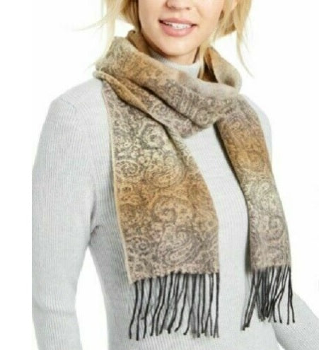 Cejon Fringe Brown Ombre Paisley Italian Scarf. A cozy essential in a gorgeous neutral hue. Wrap up in Cejon's timeless Italian acrylic scarf.