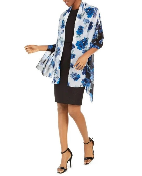 Calvin Klein Colorblock Floral Chiffon Wrap in Dark Blue. Colorful floral design adds instant class and charm to the Calvin Klein colorblock chiffon scarf. Can also be worn as a wrap