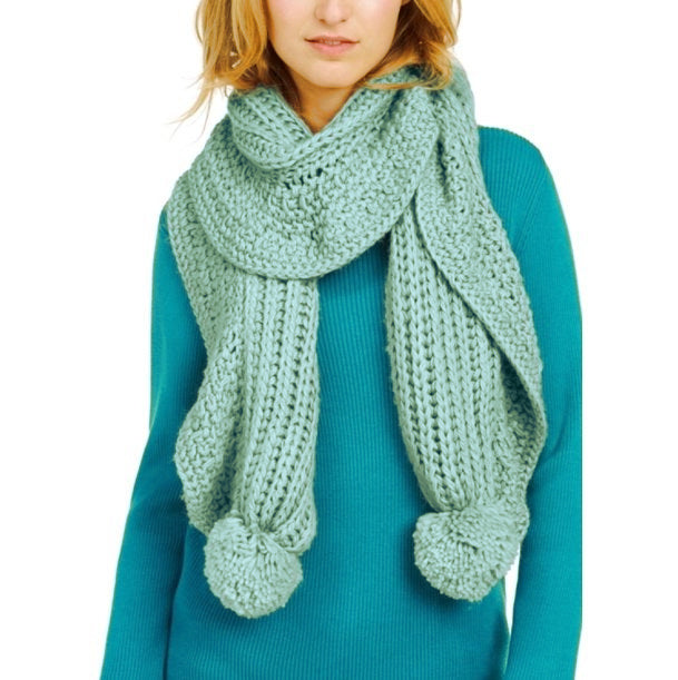 Charter Club Ruffle-Knit Boa Scarf in Pale Green. Fluffy knit poms provide a cheerful finish on Charter Club's super-cozy knit boa scarf.