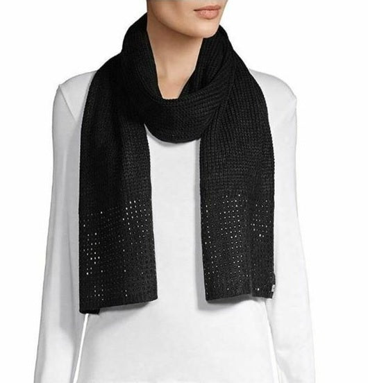 Calvin Klein Knit Studded Scarf in Black. Add a hint of shimmer and shine to your look with Calvin Klein's sleek, studded scarf.