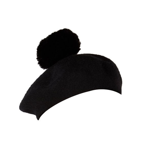 Steve Madden Black Wool & Faux-Fur Pom Pom Beret. A faux-fur pom pom adds a super-fun touch to a Steve Madden beret in slouchy wool.