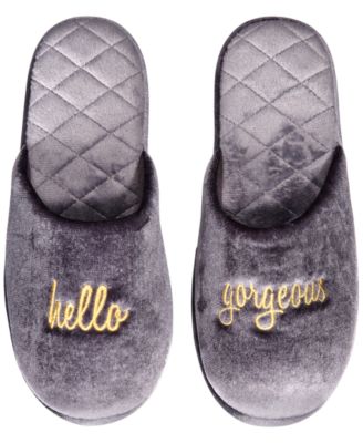 INC International Concepts Grey "Hello Gorgeous" Slippers. Every time you step into these slippers you'll say to yourself "Hello Gorgeous! These I.N.C. International Concepts slippers are luxurious in look and feel to keep you cozy throughout the year.