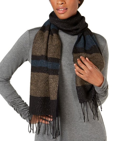 Cejon Metallic Striped Fringe Scarf in Navy.