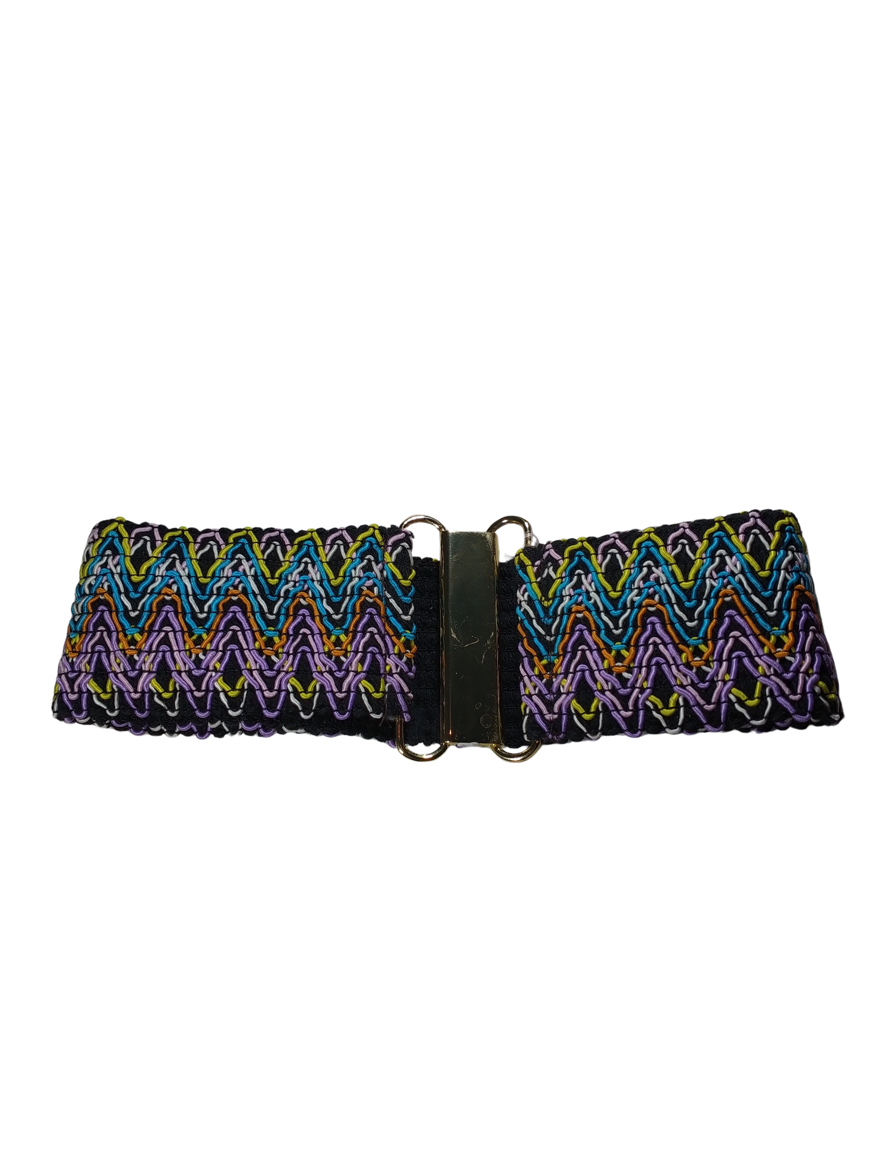 Upgrade your outfit with the Diva General Black Embroidered Belt, a stylish waist accessory crafted from stretchy webbing for a comfortable and adjustable fit. Featuring intricate multi-colored embroidery, this elegant belt adds a unique and artistic touch to your wardrobe. The secure hook & eye closure ensures a snug fit while allowing effortless styling, making it perfect for dresses, skirts, and statement outfits.