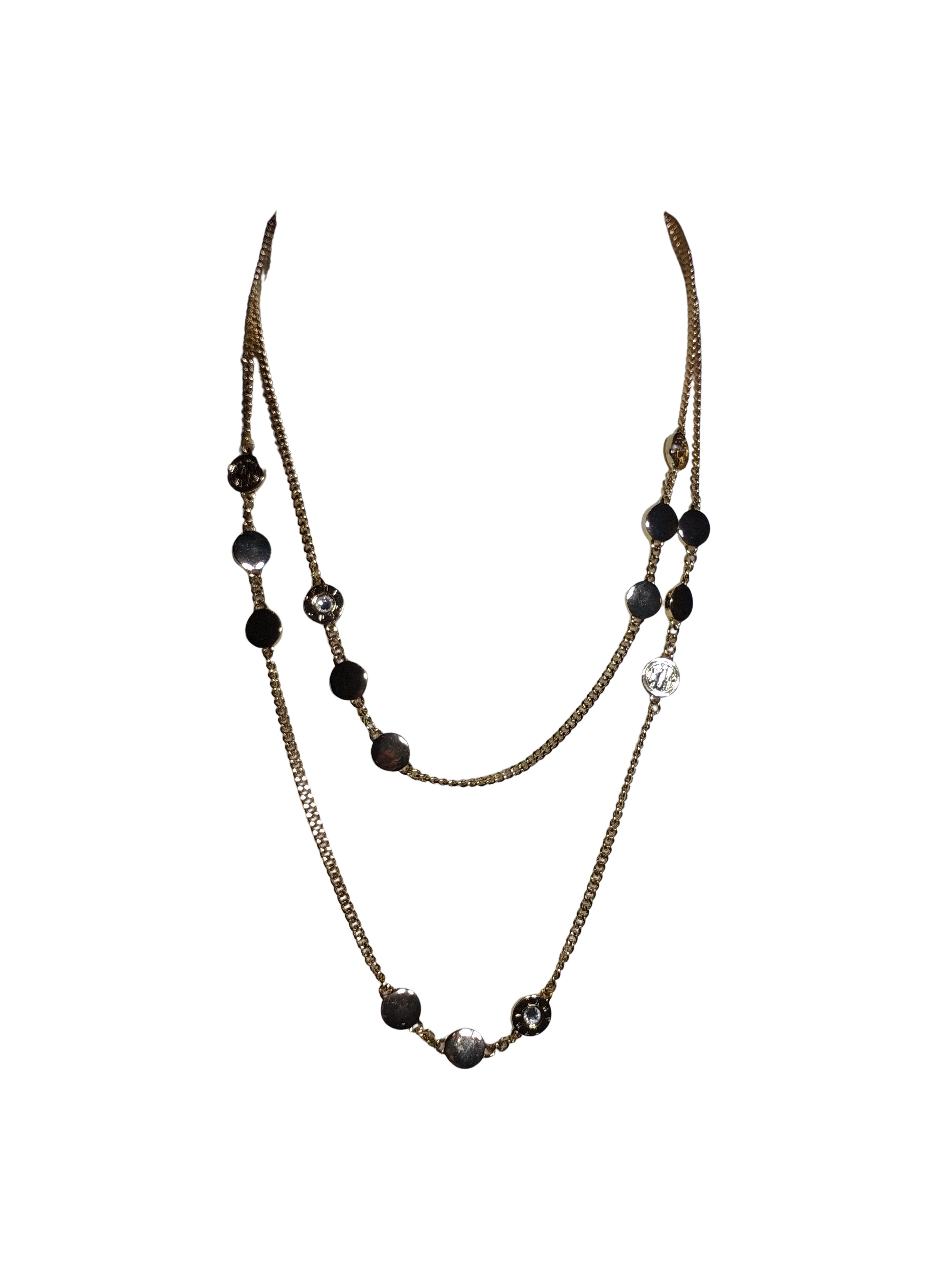 Add a touch of shimmer to your neckline with the Diva General Gold-Tone Rhinestone Disc Necklace, a radiant accessory that blends classic charm with modern sparkle. Featuring shimmering rhinestone discs and a polished gold-tone finish, this necklace is perfect for elevating everyday outfits or adding shine to special occasions.