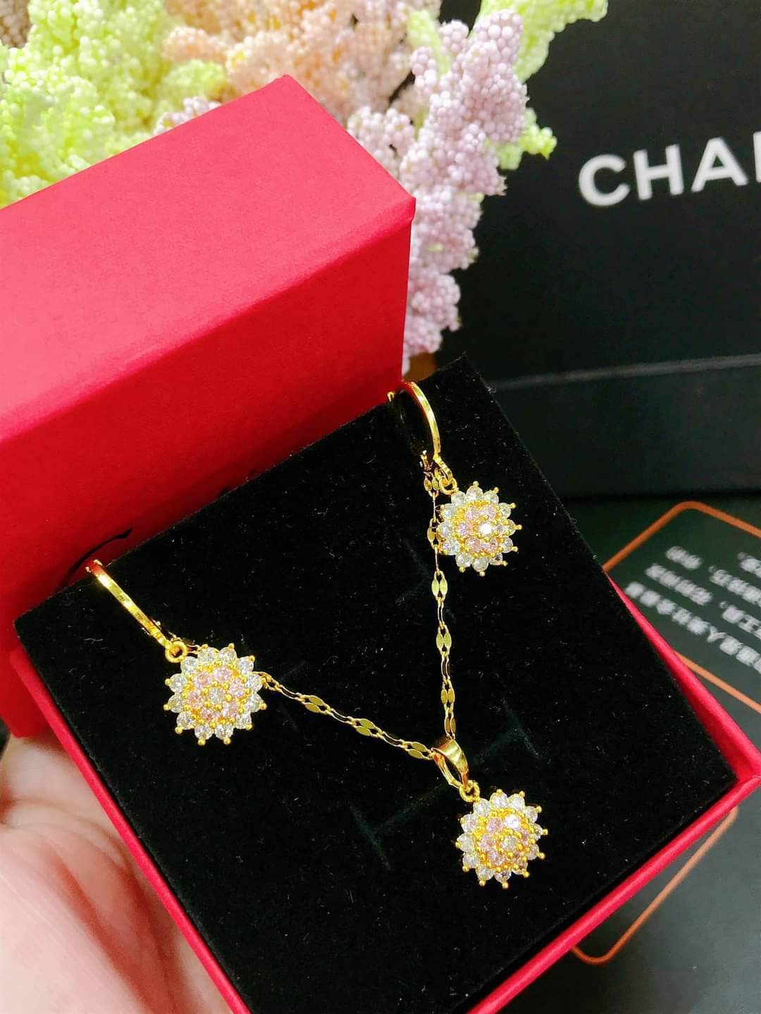 Be the life of the party in this Diva Collection beautiful jewelry like an upper-class woman. I can’t believe it is not gold. Doesn’t fade easily. . Pink/White huggie earrings, pendant necklace