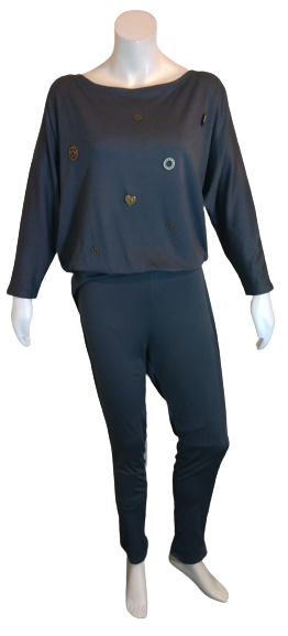 Grey Romper with Cog wheels 65% Polyester, 35% Cotton