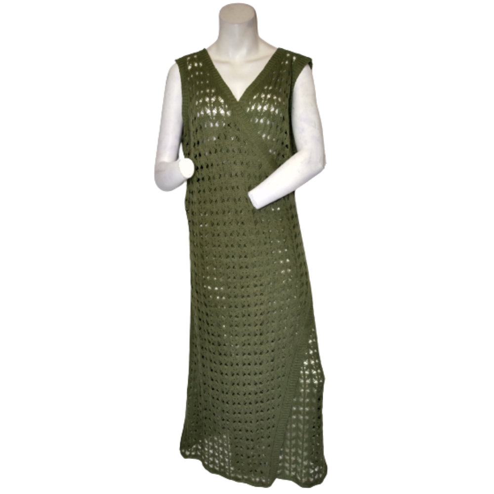 Khaki Crochet Surplice Maxi Dress (Slip not included)