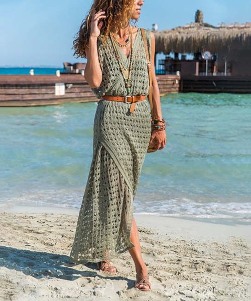 Khaki Crochet Surplice Maxi Dress