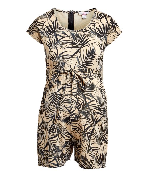 Olive Palm Tie-Waist Maternity Romper