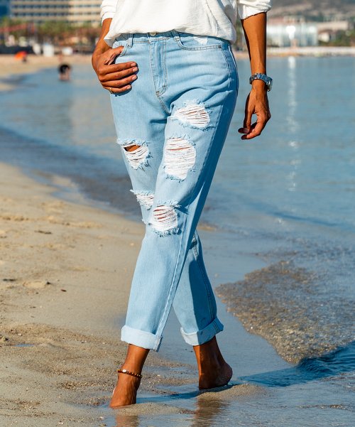 Blue Distressed Straight-Leg Jeans