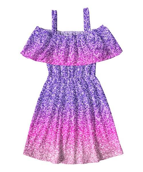 Purple & Pink Ombré Faux-Sequin Ruffle Off-Shoulder A-Line Dress