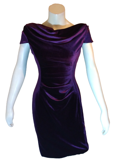 French Plum Velvet Ruched Dress 94% Polyester, 6% Elastane
