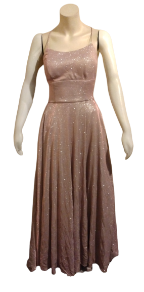 Pink Spaghetti Strap Glittery Lace-up Back Dress with train 100% Polyester