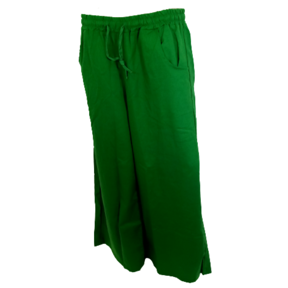 Green Side-Pocket Drawstring Wide-Leg Pants 100% Polyester