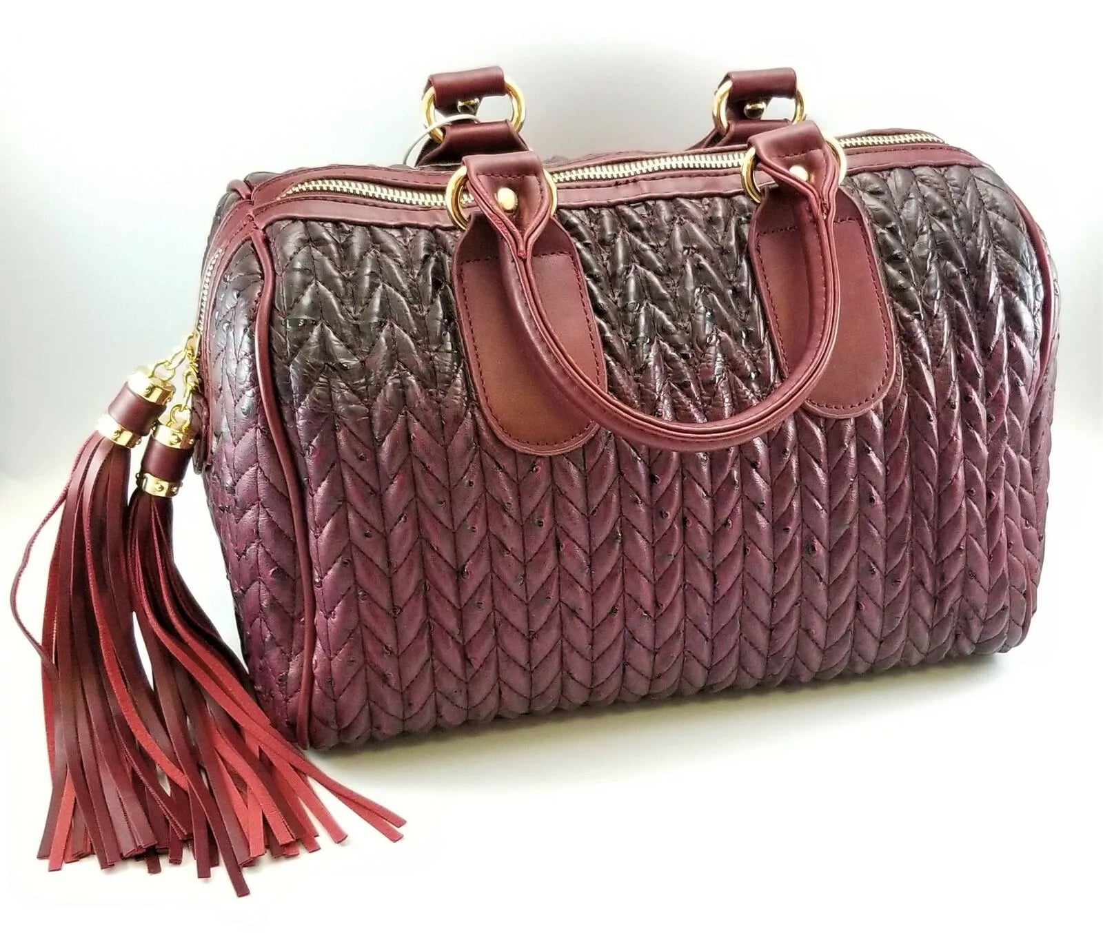 Handbag Republic Ombre Maroon Chevron Pattern Dragon Skin Duffle Satchel
