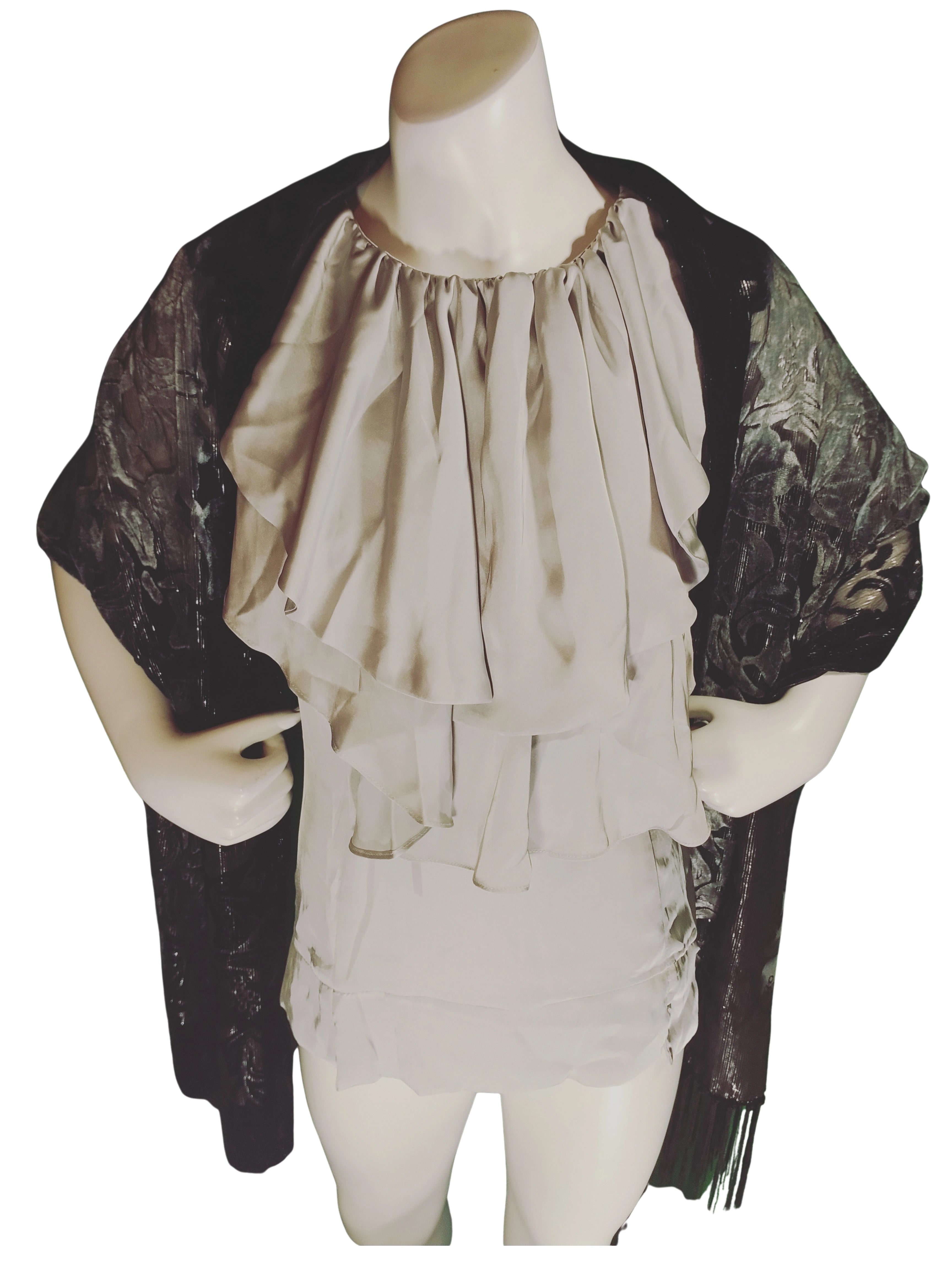 Upgrade your wardrobe with this INC Black/Silver/Green Etched Velvet Scarf, designed with luxurious etched velvet detailing for an elegant and stylish look. Crafted from a soft rayon-nylon-metal blend, this scarf offers both durability and a sophisticated sheen. Featuring flowing fringe accents, it provides a beautiful drape and movement, making it perfect for layering over formal or casual outfits. Whether styled as a wrap, draped over a dress, or worn as a statement scarf, this piece effortlessly enhances any ensemble.