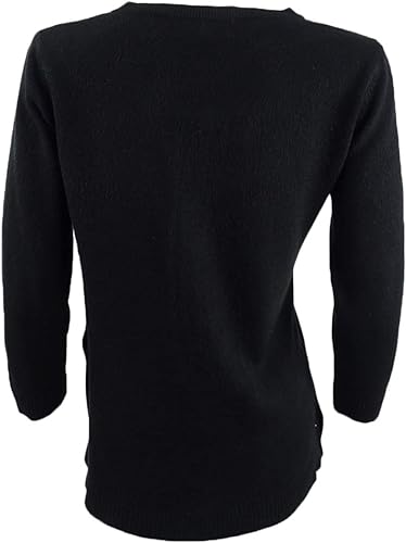 This classic sweater features a luxurious 100% acrylic construction, providing exceptional comfort, warmth, and drape. Its sleek black hue and flattering V-neck design make it a wardrobe staple that seamlessly transitions from casual daytime wear to elegant evening ensembles.