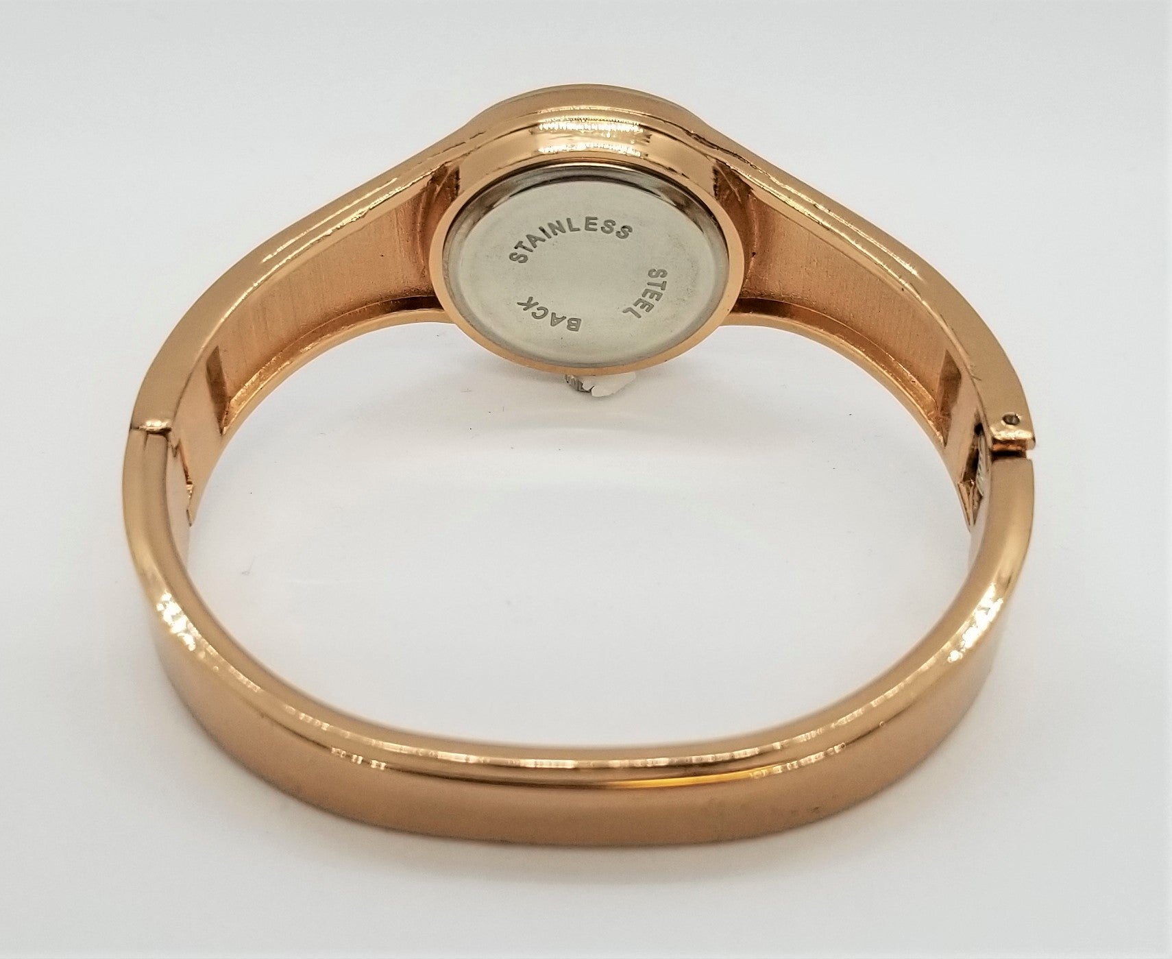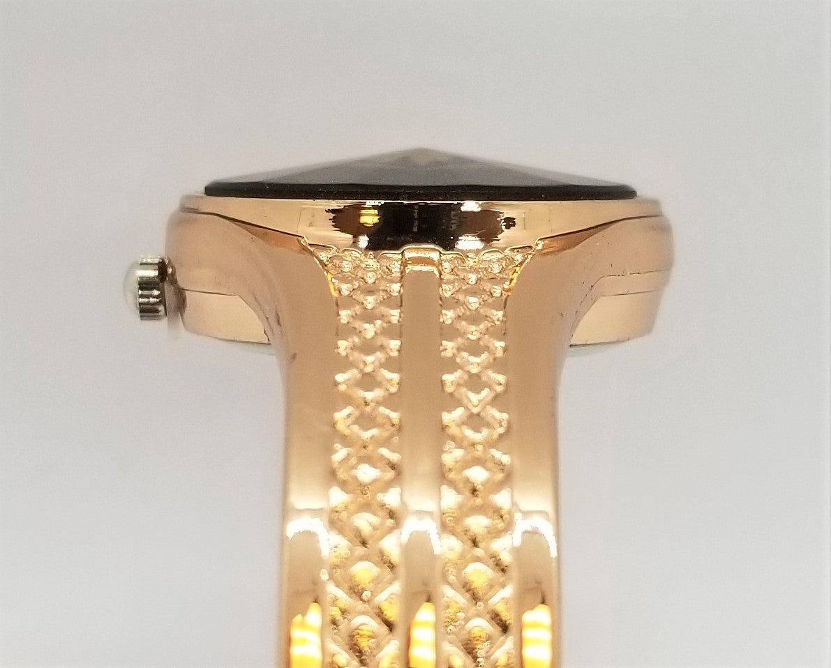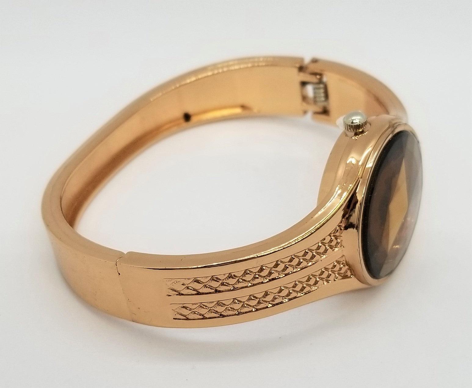 Women's Copper-Tone Watch with Raised Geometric Face and Spring Closure