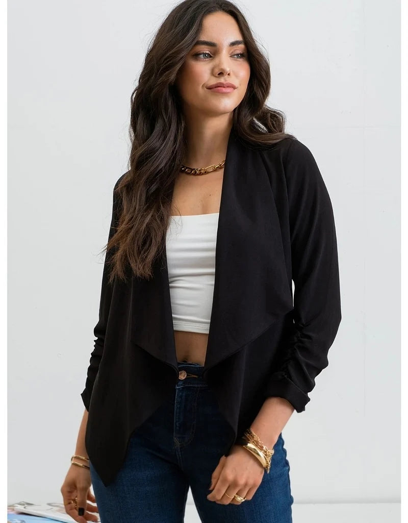 Embrace effortless elegance with this classic and versatile black open cardigan.