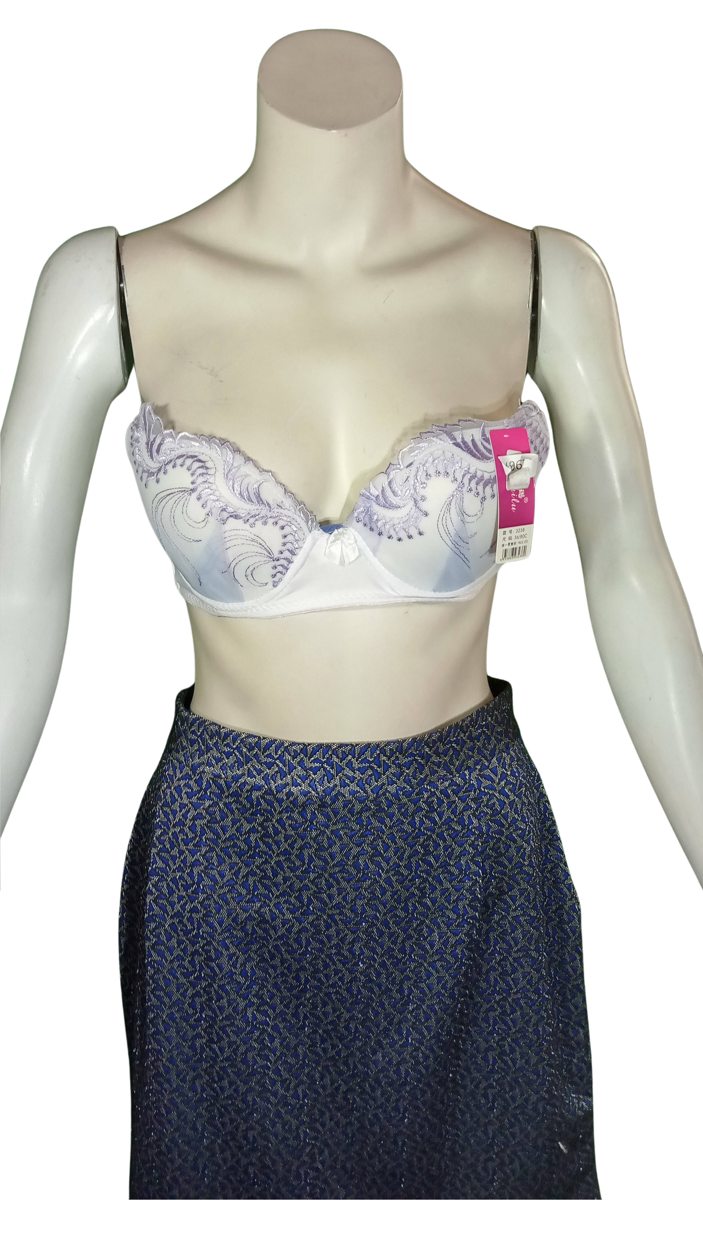 Lingyilu White & Purple Lace Push Up Bra (40 has no straps)