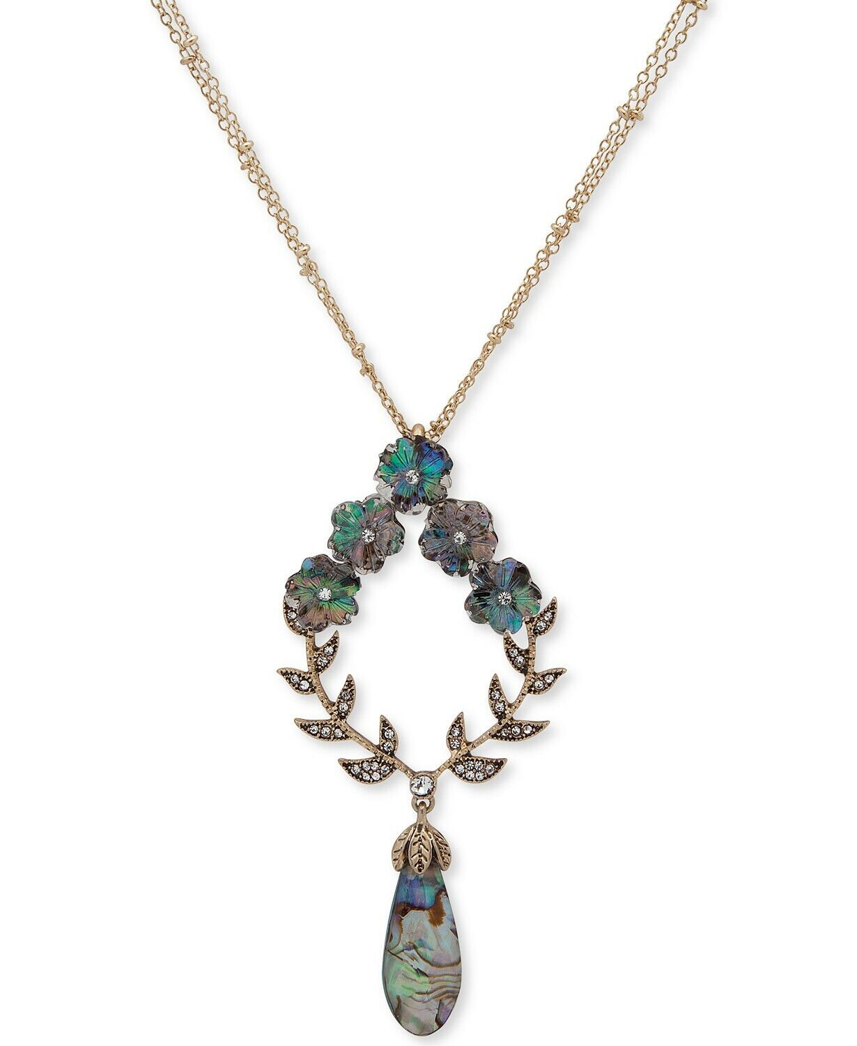 lonna lilly Gold-Tone Flower Stone Pendant Blue