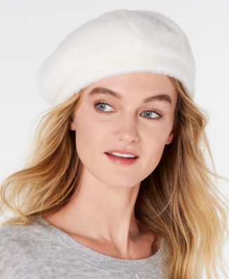 INC International Concepts Solid Faux-Fur Beret Ivory ONE SIZE