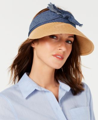 INC International Concepts Distressed-Denim Visor TanWhite ONE SIZE
