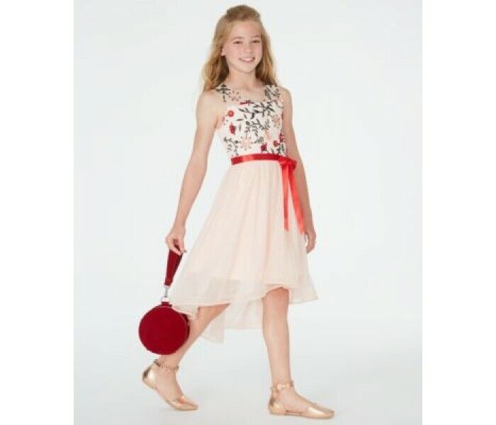 My Michelle Sequin Hearts Big Girls Embroidered High-Low Pink 14