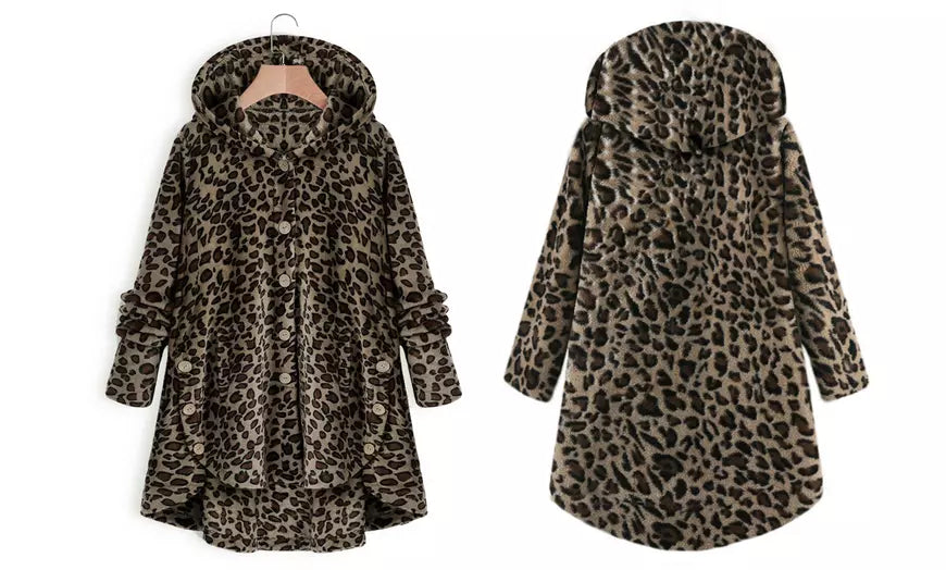 Invest in the NXH Tan Leopard Pocket Plush Hooded Button-Up Coat and experience the magic of cozy luxury!
