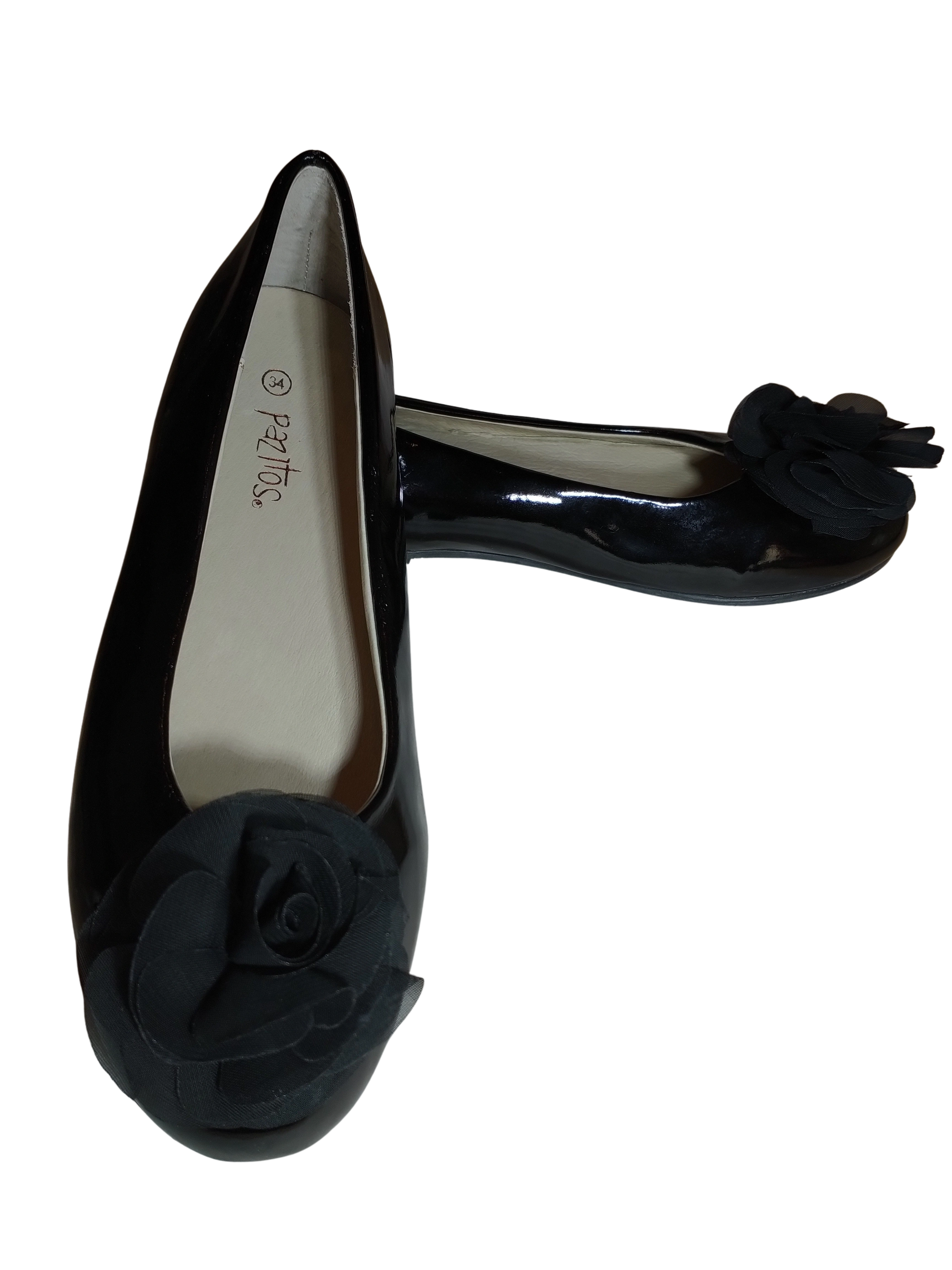 Pazitos Black Shiny Flats with Flower – Elegant Kids Shoes | Size 34