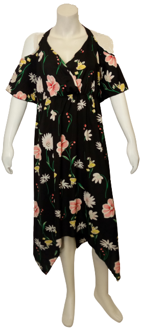 Dress, Plus, 4X, Asymmetrical, Flowers, Straps, Cut-out Shoulder, Black, Pink, Cream, Green