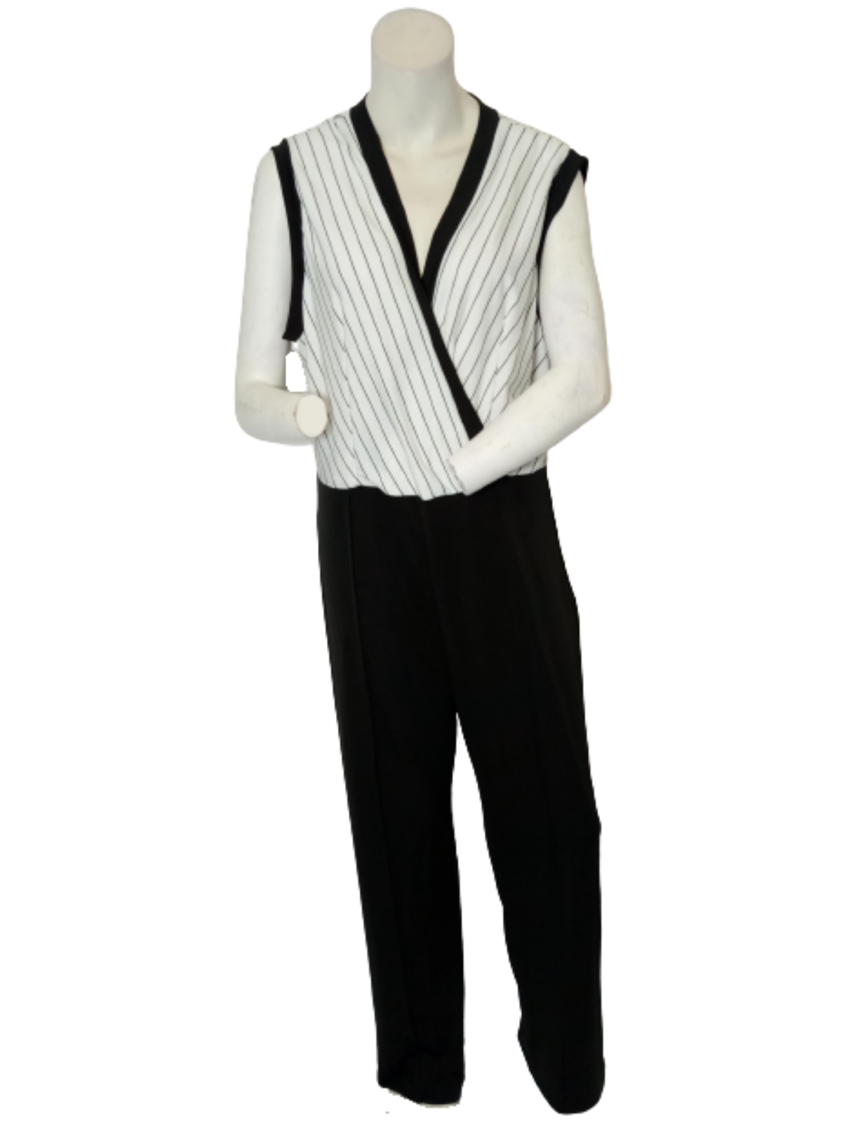 Pant, Plus, 2XL, Jumpsuit, Stripes, Side Zipper, Black, White