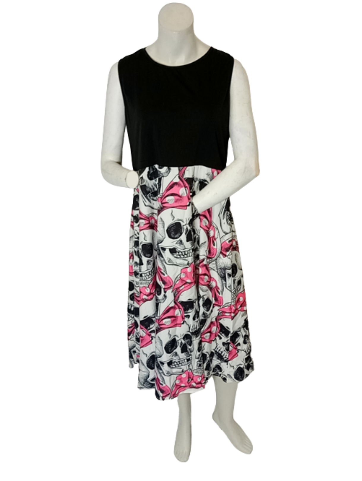 Dress, Plus, Large, Asymmetrical, Skulls with Bows, Side Zipper, Black, White, Pink