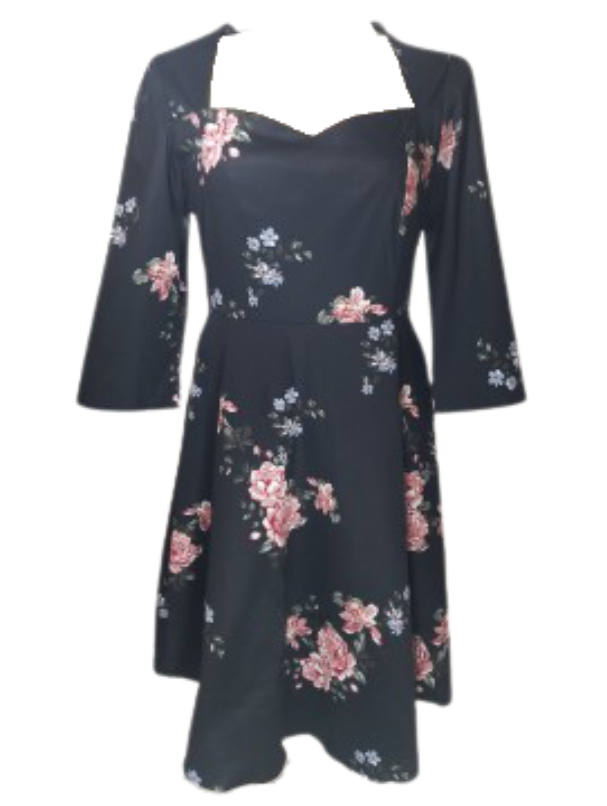 Dress, Plus, 1XL, Flowers, Side Zipper, Black, Blue, Salmon, Green