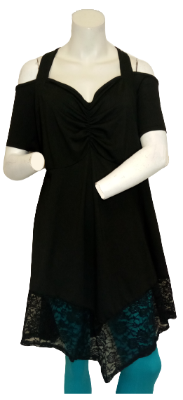 Dress, Plus, 4XL, Asymmetrical, Lace Trim, Front Rusching, Straps, Cut-out Shoulders, Black
