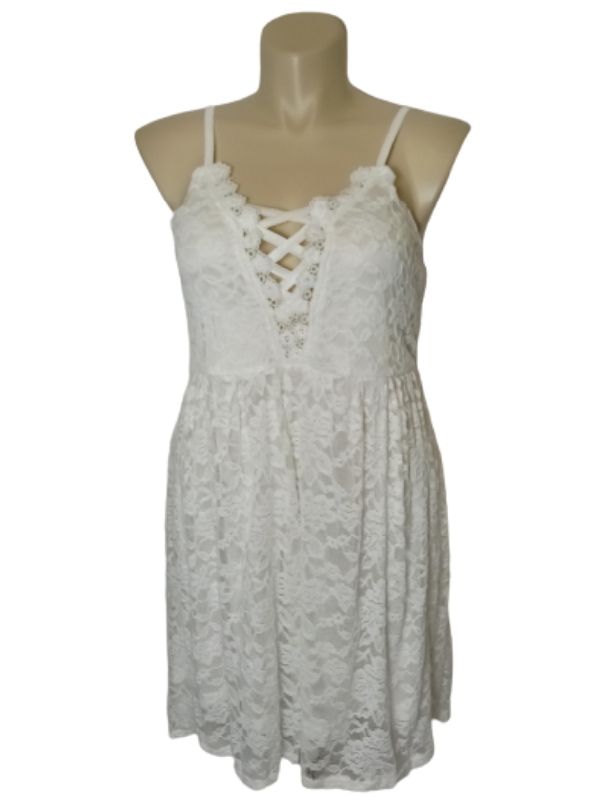 Top, Plus, 1X, Lace, Spaghetti Straps, White