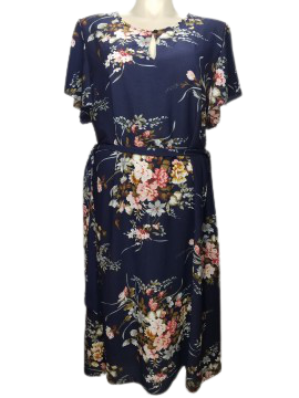 Diva General Collection Navy Flower Pattern Short Sleeve A-Line Dress. Size 2XL. Fabric is sheer. 100% Polyester
