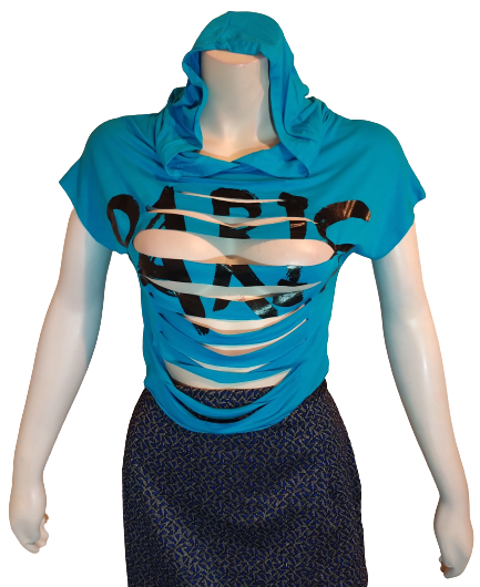 Blue Paris Hoodie with Slits 96% Rayon, 4% Spandex