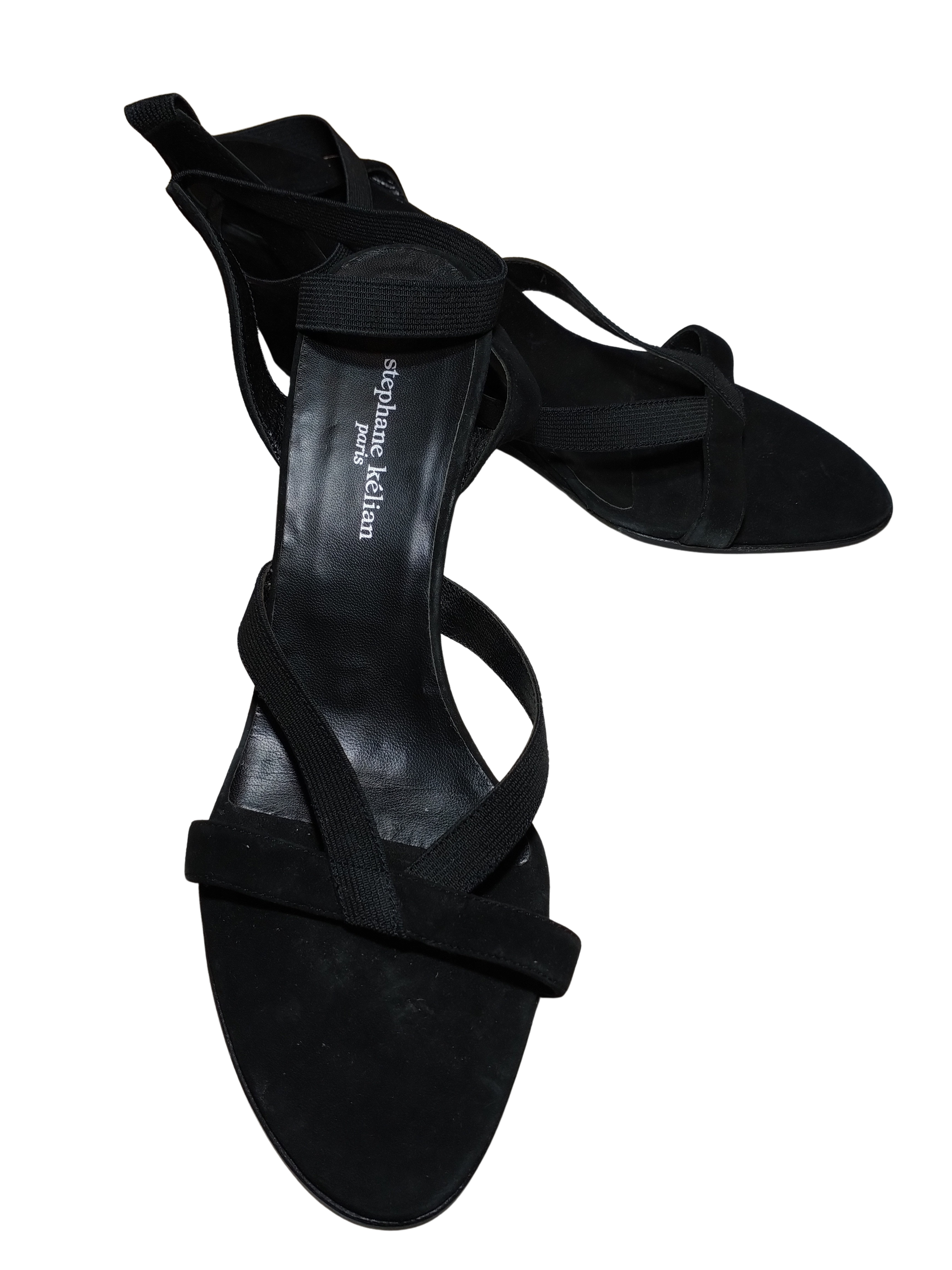 Stephane Kelian Paris Black Faux Suede Elastic Platform Heels