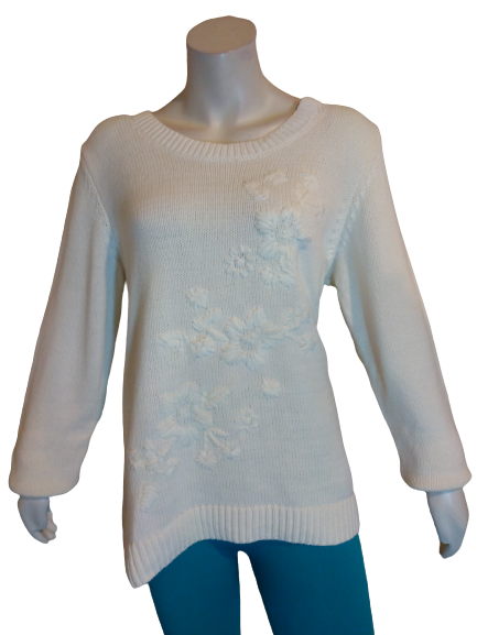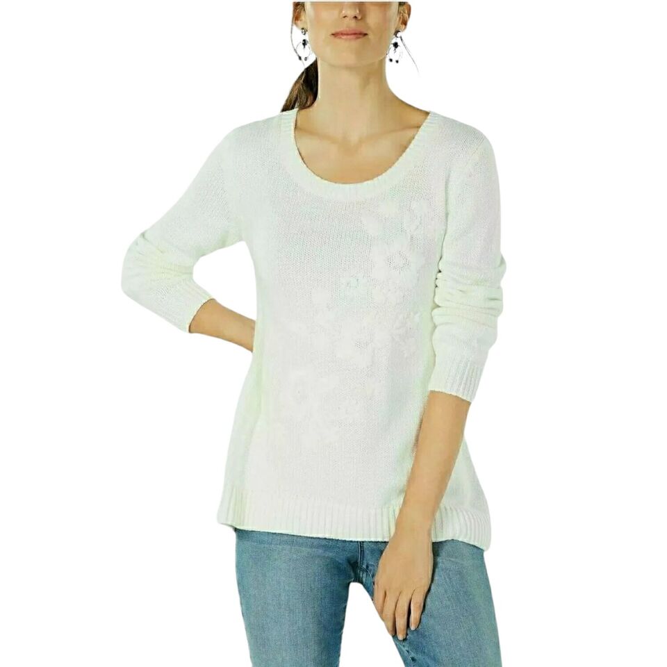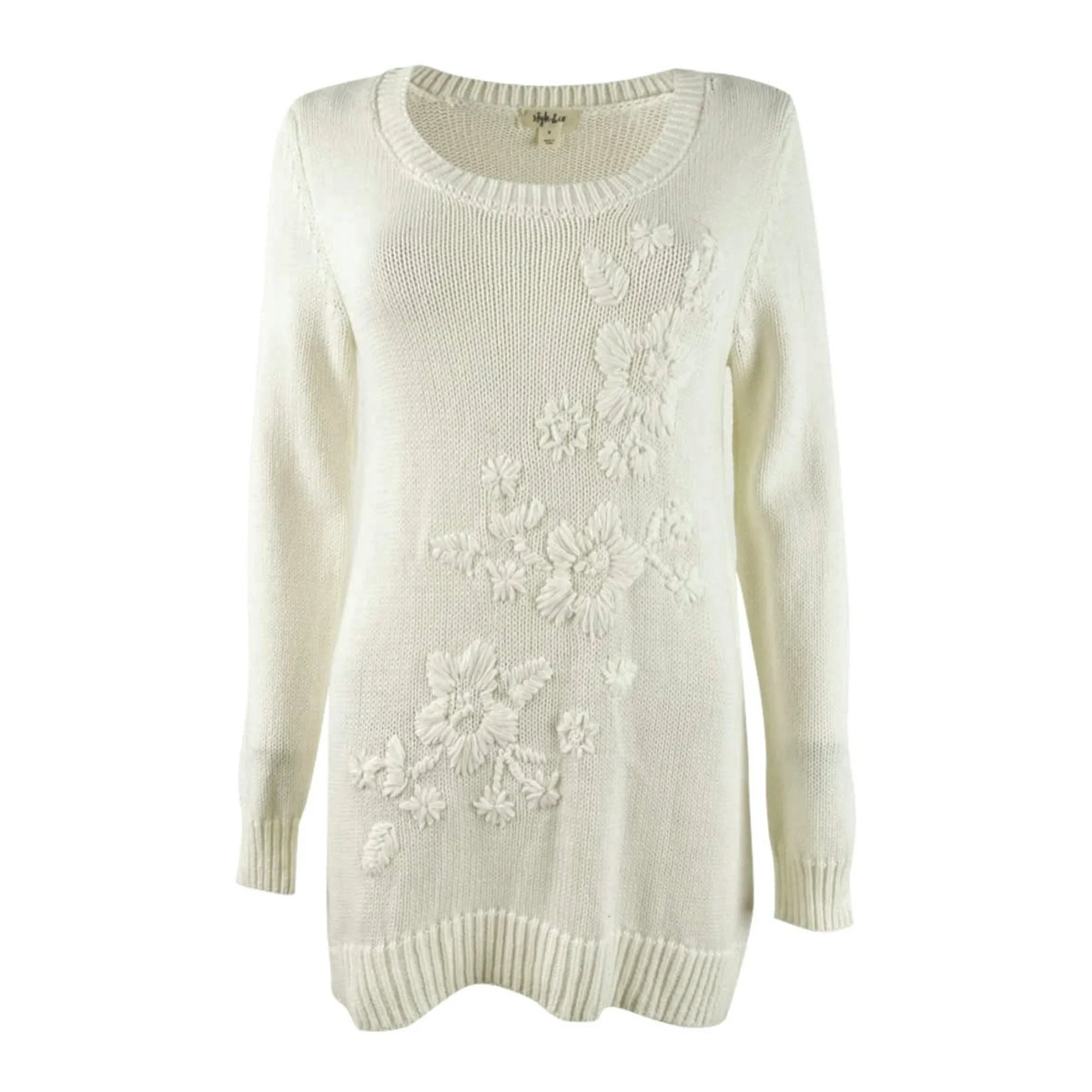 Embrace the beauty of winter with the Style & Co. Winter White Embroidered Flower Sweater, a captivating addition to your cold-weather wardrobe! ⛄️👗✨