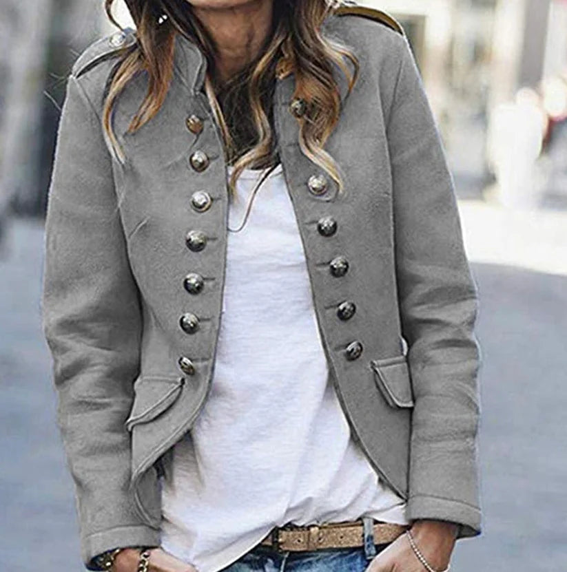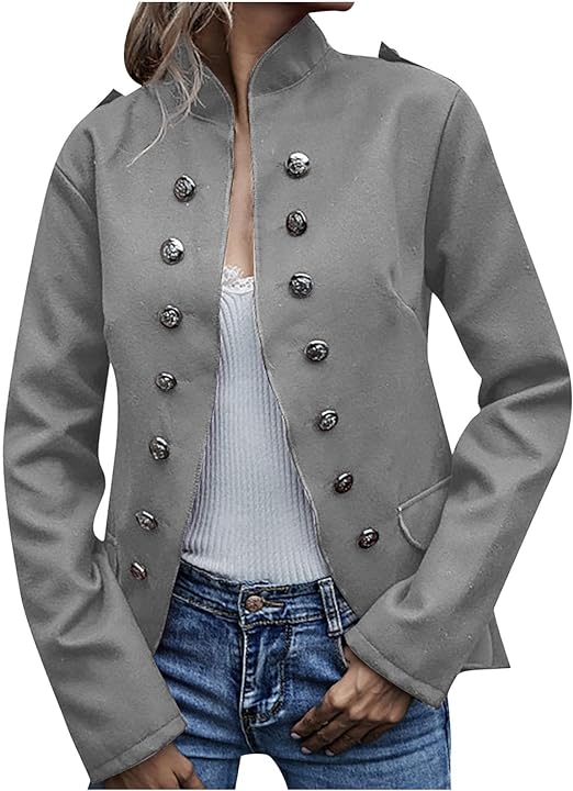 Shop now and experience the timeless style and sophistication of the Suvimuga Gray Button-Accent Blazer!