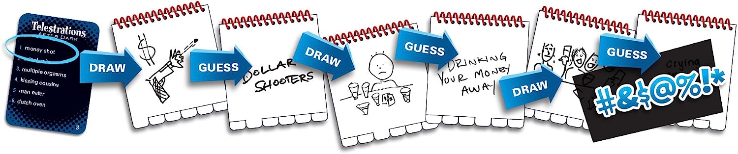Embark on a hilarious and risqué adventure with Telestrations After Dark, the adults-only twist on the classic drawing and guessing game, guaranteed to bring endless laughter and unforgettable moments! ✨😈🎨🥂