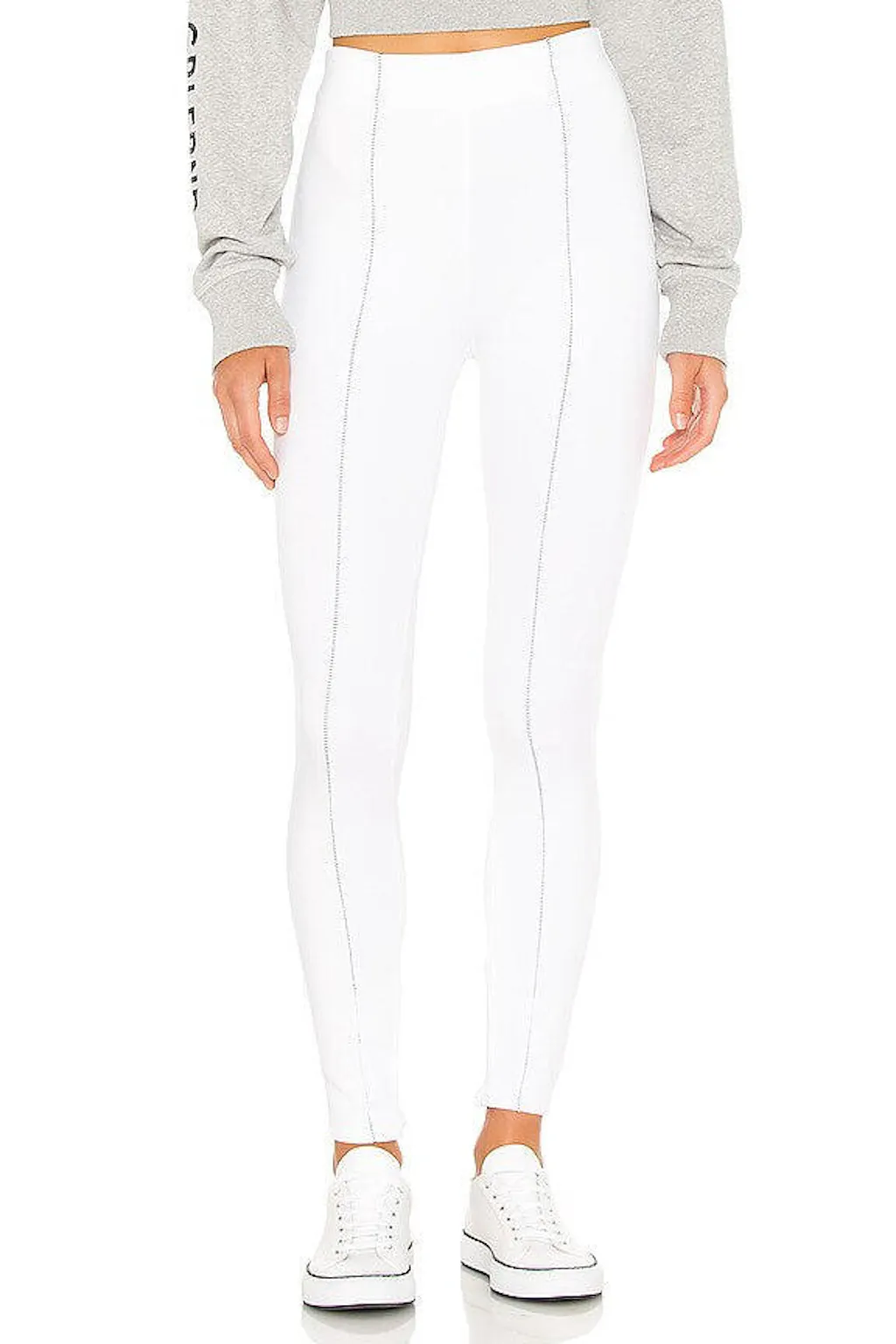 The H Hannah Legging in White is designed with contrast railroad stitching along the sides, which adds a touch of visual interest and modern flair. This detail not only accentuates the sleek lines of the leggings but also adds a unique touch that sets them apart from standard white leggings. Whether you’re dressing up for a night out or keeping it casual, these white leggings for women can be styled in numerous ways.