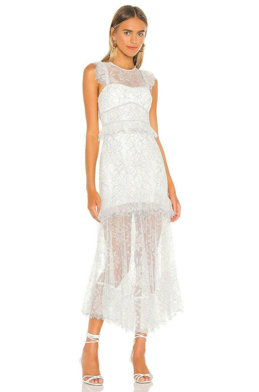 The Alice McCall I Found You Midi Dress in Porcelain is the perfect blend of romance and elegance, ideal for any special occasion. This white midi dress for women features delicate lace fabric with satin rope trim and flutter trim with eyelash edges, offering a timeless and feminine look. Whether you're attending a formal event or dressing casually for a day out, this midi dress for women brings versatility, style, and comfort to your wardrobe.